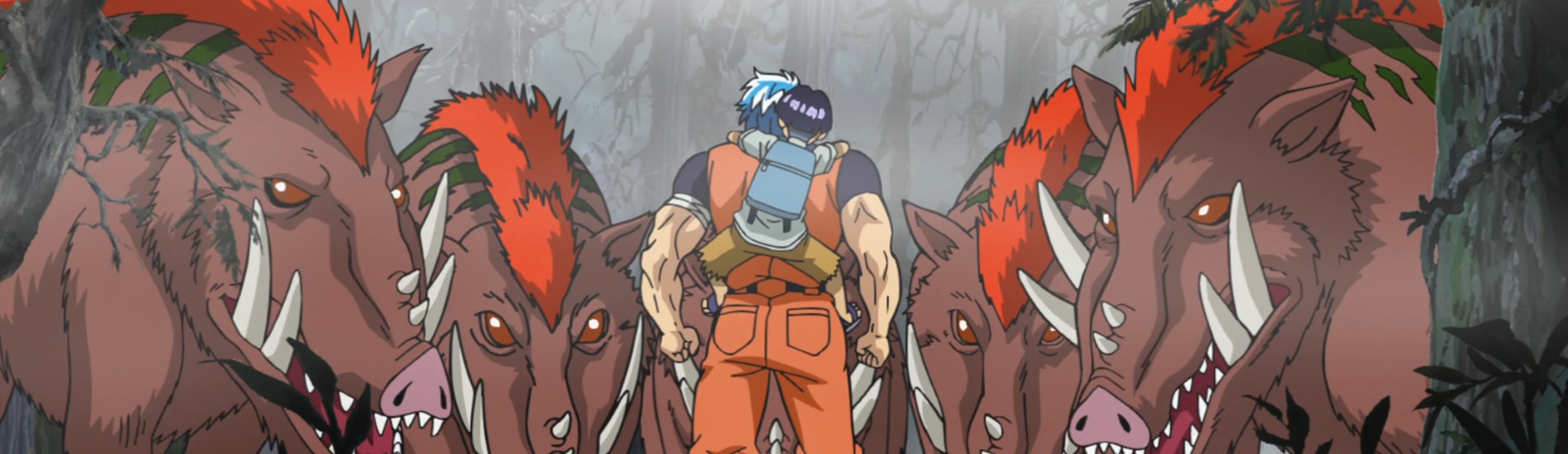 A Toriko movie, the action in it takes place before the beginning of the TV series. The story follows a kid, Peck, who lives in a village attacked by a Gerold. So, he seeks the help of Toriko.